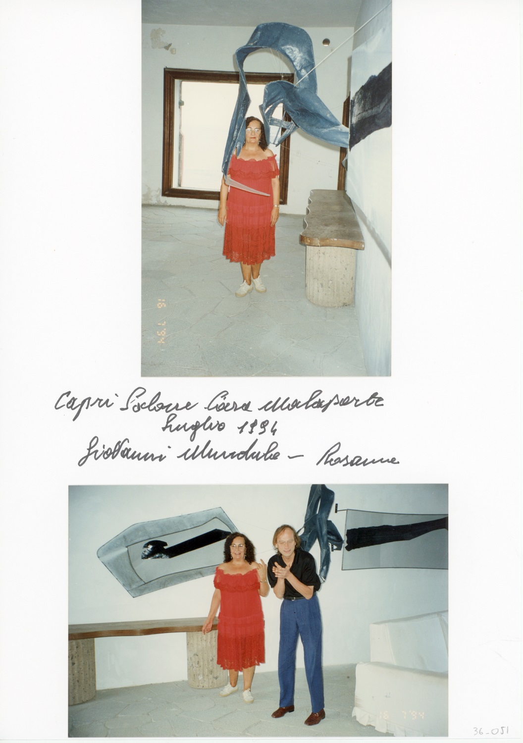 Giovanni Mundula e Rosanna Chiessi si ritrovano a collaborare nel 1994 a Casa Malaparte. Dall’inizio degli anni ’90 Rosanna Chiessi inizia la collaborazione con gli eredi di Curzio Malaparte per l’organizzazione di eventi culturali con artisti contemporanei nella famosa casa di Capri, costruita dallo scrittore sullo stretto promontorio di Capo Massullo. Nell’arco degli anni ’90 decine di artisti (Margaret Raspè, Jakob De Chirico, Ben Patterson, Allan Kaprow, Daniele Lombardi, Giuseppe Desiato, Tufano; Mimmo Rotella, Georg Jappe, Geoff Hendricks, Hermann Nitsch, Luciano D’Alessandro e tanti altri) soggiornano e creano opere ispirandosi quasi sempre a casa Malaparte e allo straordinario paesaggio circostante.
