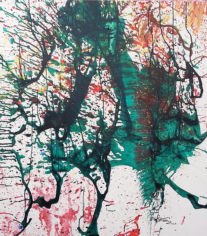 Yasuo Sumi, performance Museo Magi ‘900, 2008, work 917, Id 132, acrylic on canvas, cm 120×145. Shown at Magi’900 and Mambo Museum (Bologna) 2018.