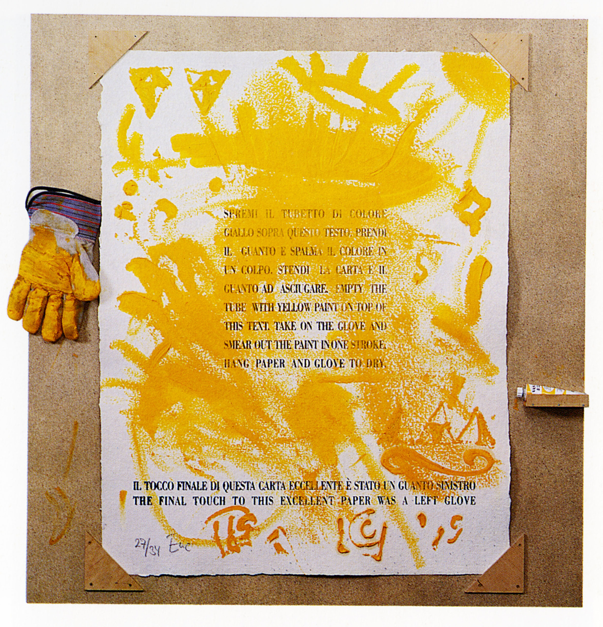 Eric Andersen, Tocco Giallo, 1980, Edizione Pari&Dispari, serigrafia, cm 88 x 70, tiratura 37 esemplari. Serigrafia su carta mano con guanto e tubetto di colore giallo. L’opera è stata esposta in diverse mostre, a Berlino nel 1993 durante una mostra Fluxus nella Galleria Vostell, organizzata da Pari & Dispari con opere della propria collezione. Parte […]