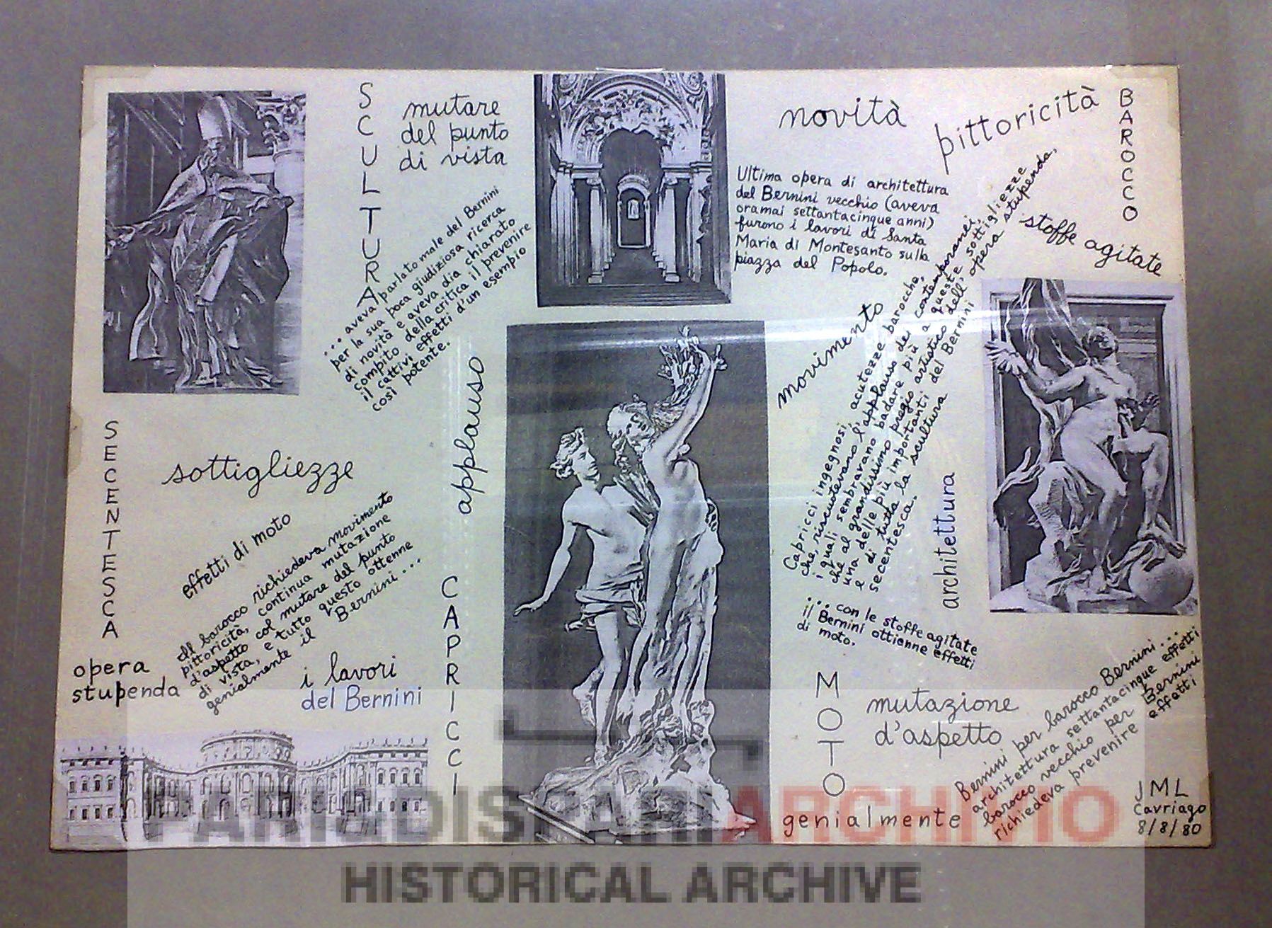 Progetto di edizione di Jackson Mac Low dedicato a Gian Lorenzo Bernini, realizzato a casa di Rosanna Chiessi a Cavriago nel 1980. Carta, fotocopie, inchiostro, cm 35×50.