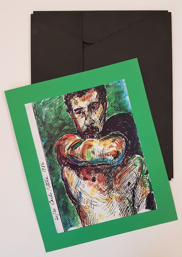 Carlo Pittore, Pugili, 1986, edizione, cartella con 8 stampe a colori a getto d’inchiostro, stampe cm 28 x 21,5, stampe con cartoncino cm 35 x 28,5. Tiratura su carta ENCO BOND (1/20, 4/20, 19/20, 20/20) firmate e numerate dall’artista.